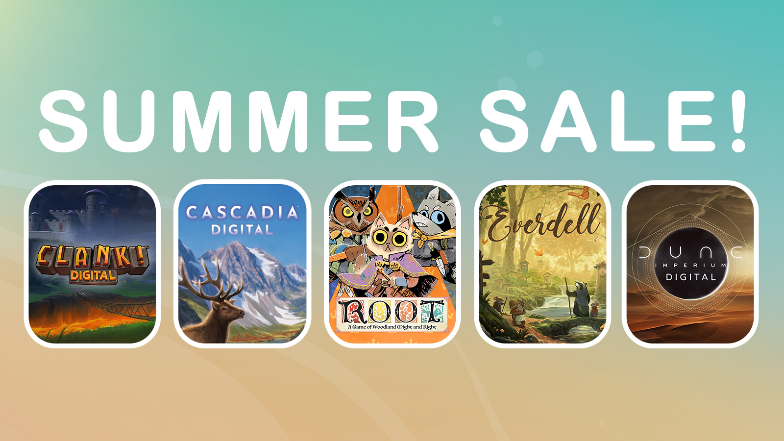 Summer has arrived! The trees are green, the sun is out, and… it’s hot. It’s very hot. Why not get away from it for a bit by playing some digital board games inside? Welcome to the Steam Summer Sale, where you’ll be able to get Dire Wolf games at a discount on Steam and mobile platforms from June 26th – July 10th!